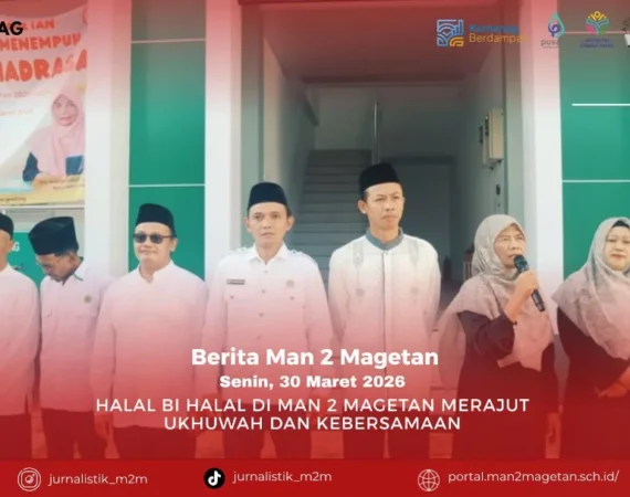 Senin, 30 Maret 2026, MAN 2 Magetan mengadakan kegiatan halal bihalal yang diikuti oleh seluruh warga madrasah. Kegiatan ini berlangsung di halaman madrasah. Acara diawali dengan pelaksanaan salat Dhuha berjamaah di masjid sekolah. Setelah itu, kegiatan halal bihalal dimulai pada pukul 07.30 WIB. Sambutan pertama disampaikan oleh Kepala madrasah MAN...