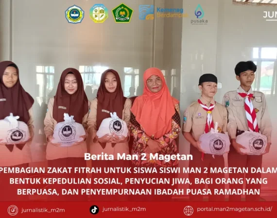 Jum’at, 13 Maret 2026, MAN 2 Magetan melaksanakan kegiatan pembagian zakat kepada siswa-siswi yang berhak menerima. Kegiatan ini merupakan salah satu bentuk kepedulian dan upaya menumbuhkan semangat berbagi di lingkungan madrasah, khususnya di bulan suci Ramadhan. Acara dilaksanakan setelah pelaksanaan salat Duha, yaitu pada pukul 07.45–08.15 WIB. Kegiatan diawali dengan...