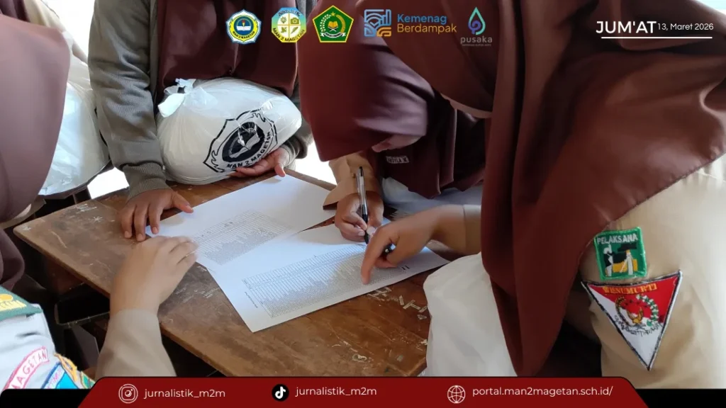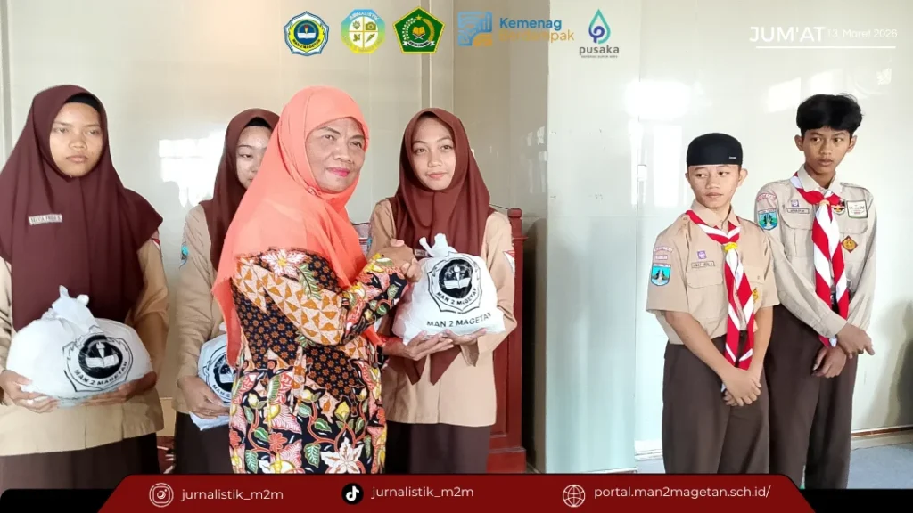 Jum’at, 13 Maret 2026, MAN 2 Magetan melaksanakan kegiatan pembagian zakat kepada siswa-siswi yang berhak menerima. Kegiatan ini merupakan salah satu bentuk kepedulian dan upaya menumbuhkan semangat berbagi di lingkungan madrasah, khususnya di bulan suci Ramadhan.