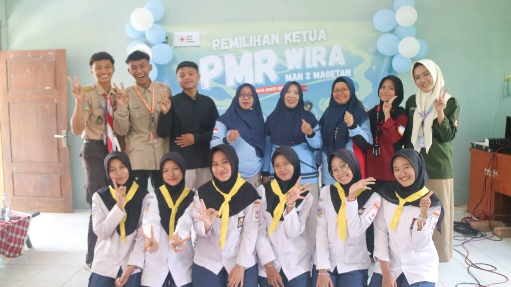 Sabtu, 27 September 2025. Pemilihan Ketua PMR Wira MAN 2 Magetan masa bhakti 2025-2026 berlangsung meriah di Aula MAN 2 Magetan mulai pukul 07.00 WIB. Acara dihadiri oleh seluruh anggota PMR, siswa kelas x, perwakilan dari beberapa organisasi MAN 2 Magetan, serta pembina PMR.